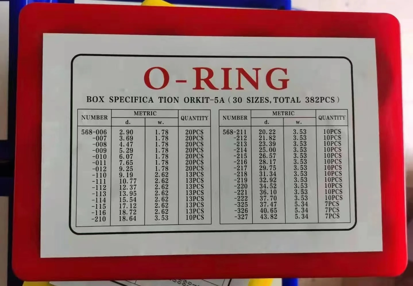 382 pcs O-Ring box red color
